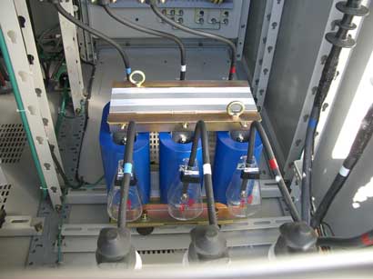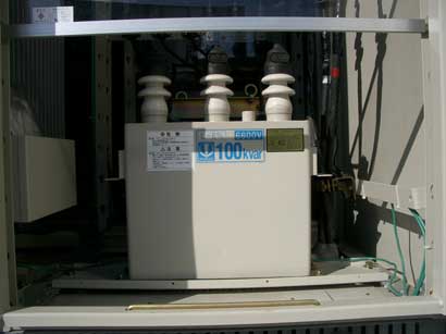 高圧進相用コンデンサ(SC) 高圧回路に接続して、遅れ無効電力を補償し、力率を改善する目的で設置されます。 |