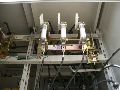 高圧交流負荷開閉器(LBS) 通電状態で負荷電流を開閉できる開閉器。 過電流が流れると、ヒューズが溶断し開閉器が開放する。 変圧器やコンデンサなどの開閉器として使用されます。 |